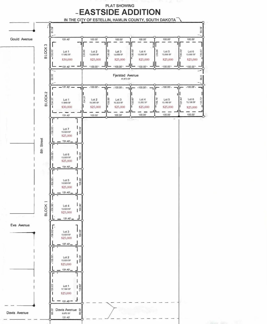Make your new home dreams come true on a spacious lot in Estelline, SD! The community is looking to grow and they want you to join them. Featuring a Blue Ribbon school system, many wonderful businesses and a quieter small town atmosphere. Situated in a perfect location just a short drive to many lakes, recreational public lands or more desired city amenities. Subject to final plat approval, covenants & restrictions and city building permitting. Inquire on these large lots today!